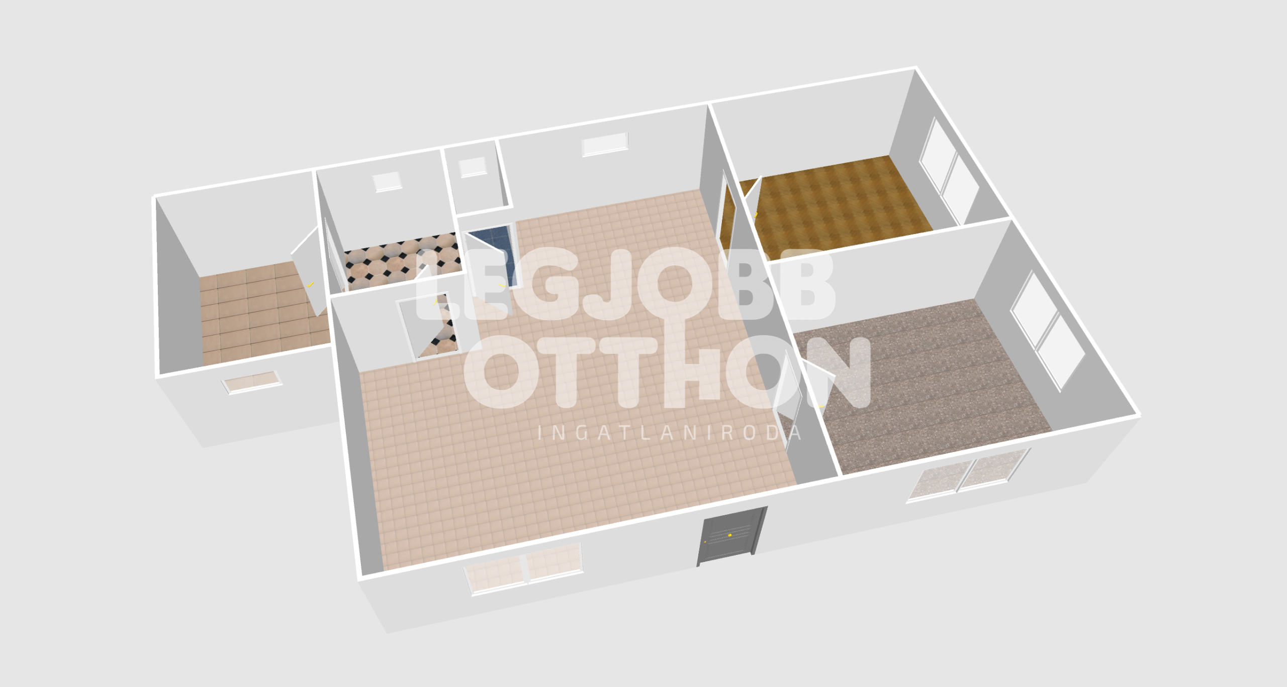 - 2 szoba + hatalmas nappali,
