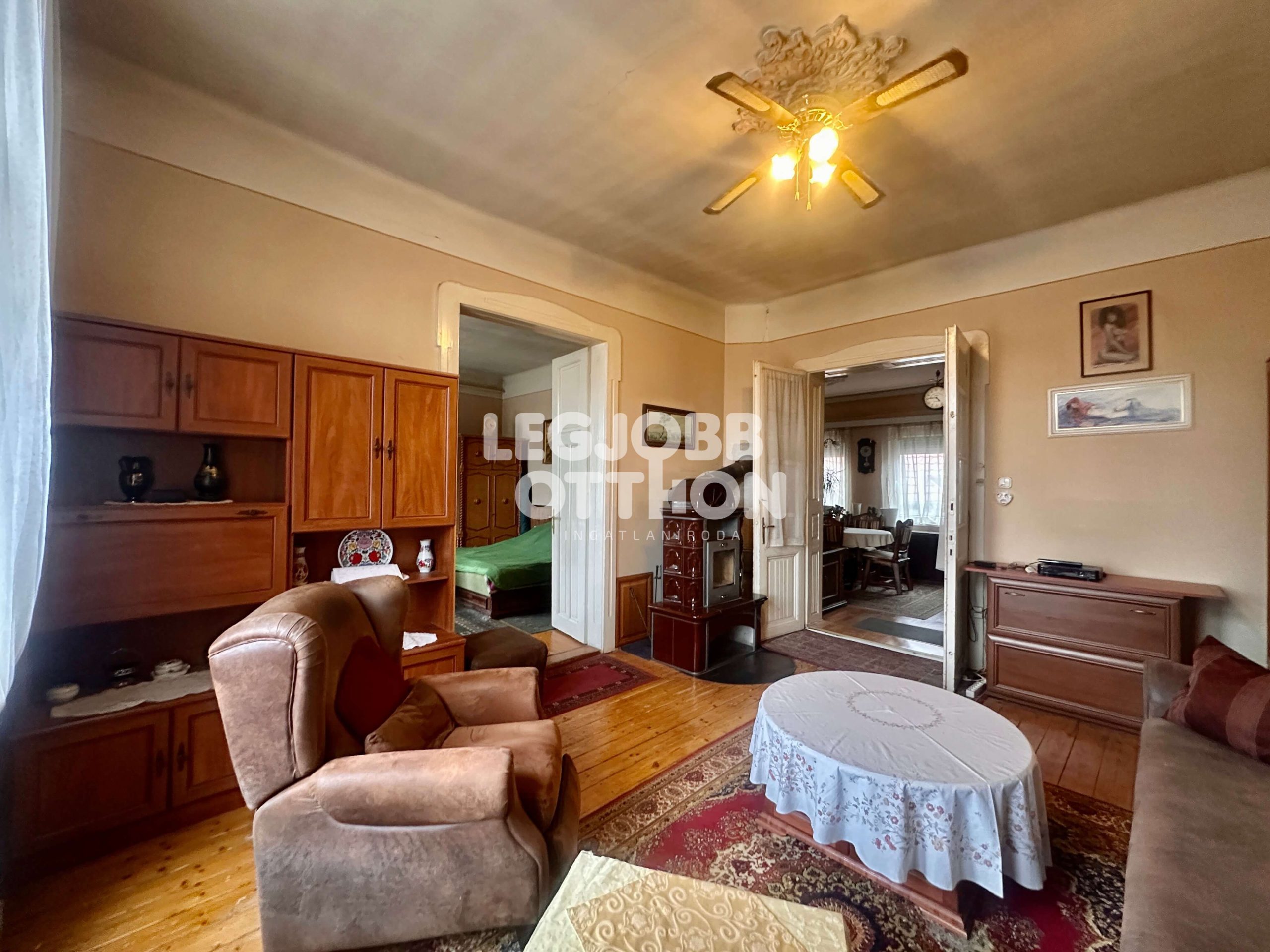- a szobákban régi típusú fa nyílászárók, a többi helyiségben hőszigetelt műanyag nyílászárók,