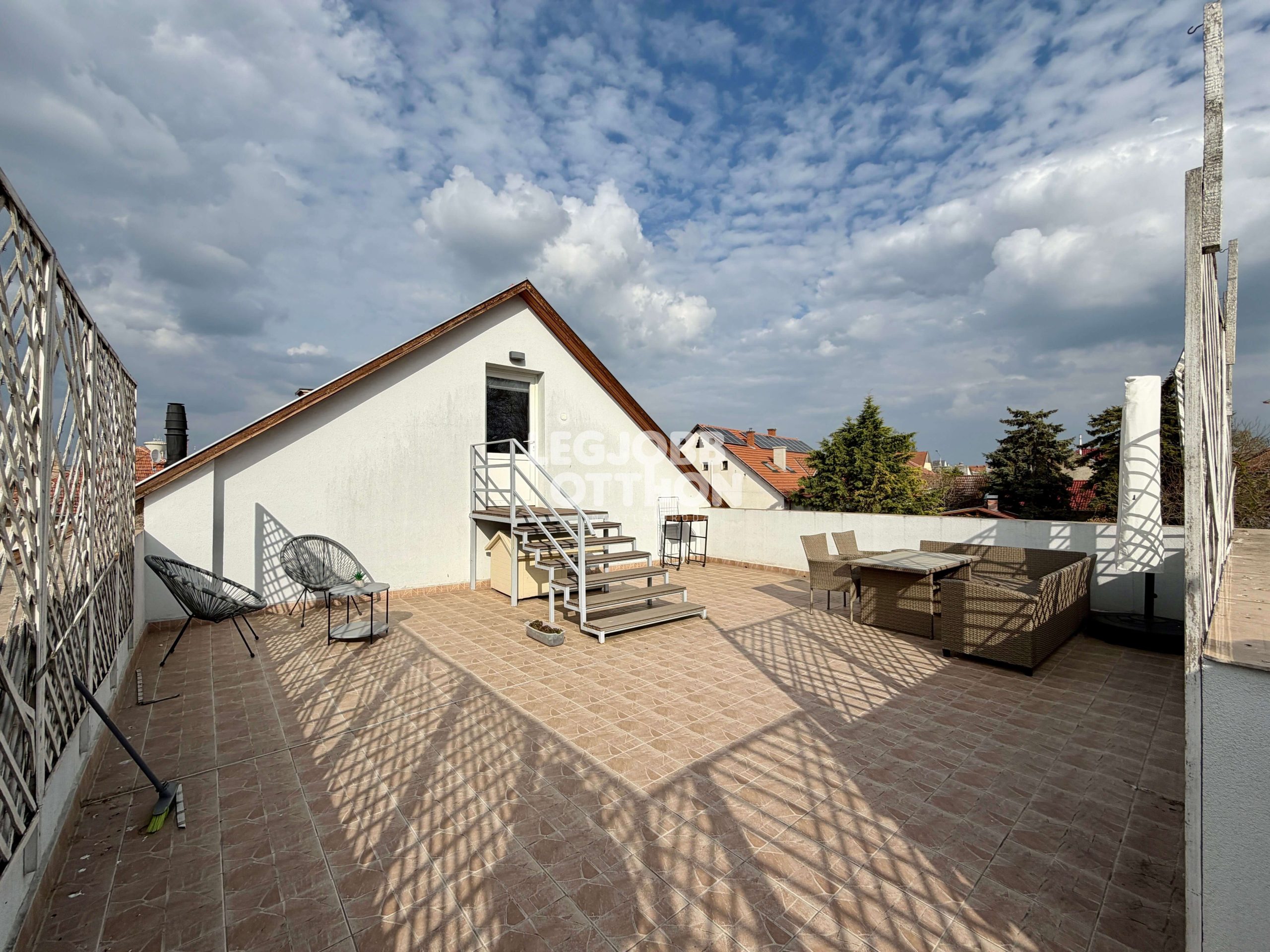 - zárt udvaron 57 m2 saját használatú tetőterasz,