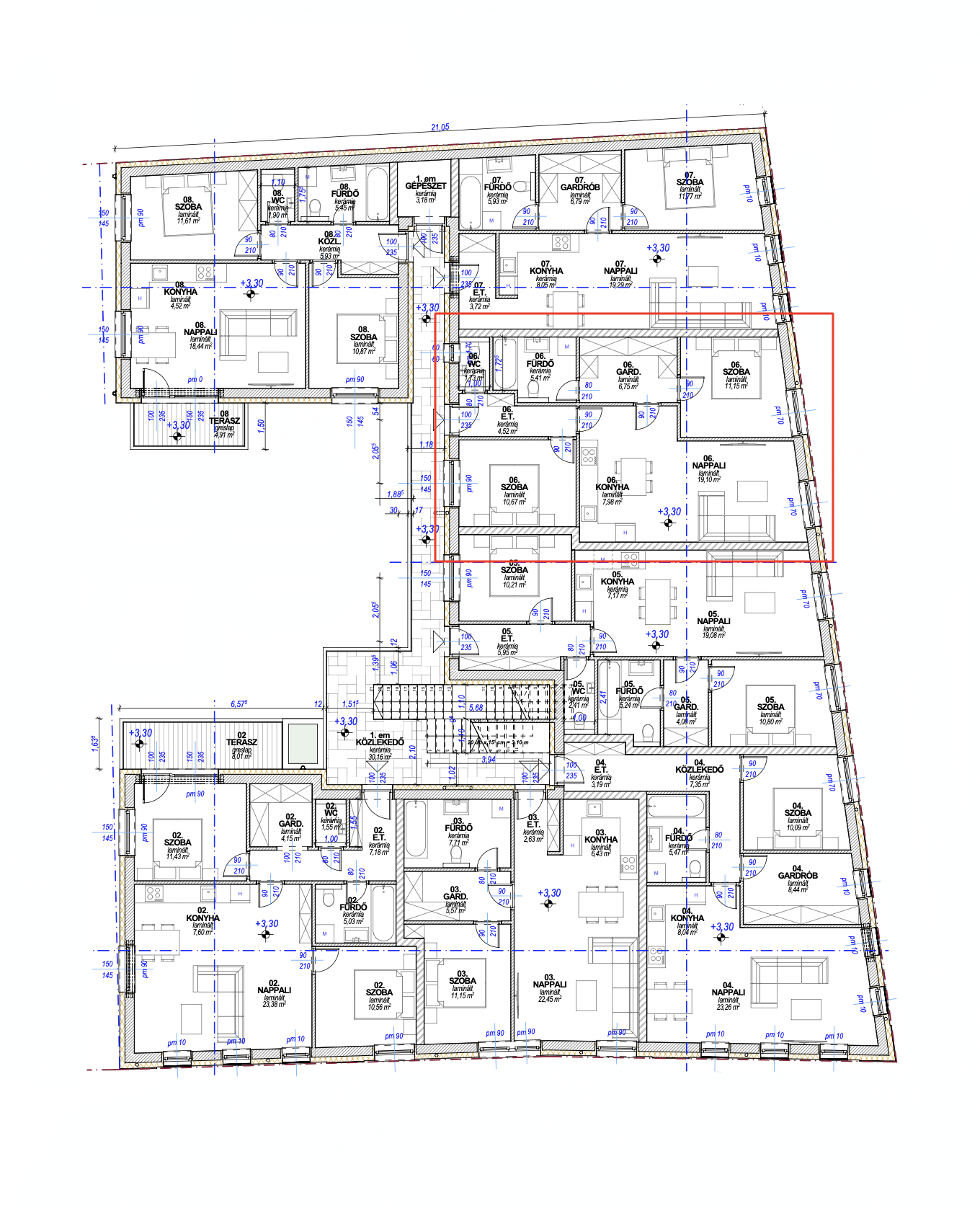 • 1. emeleti elhelyezkedés,