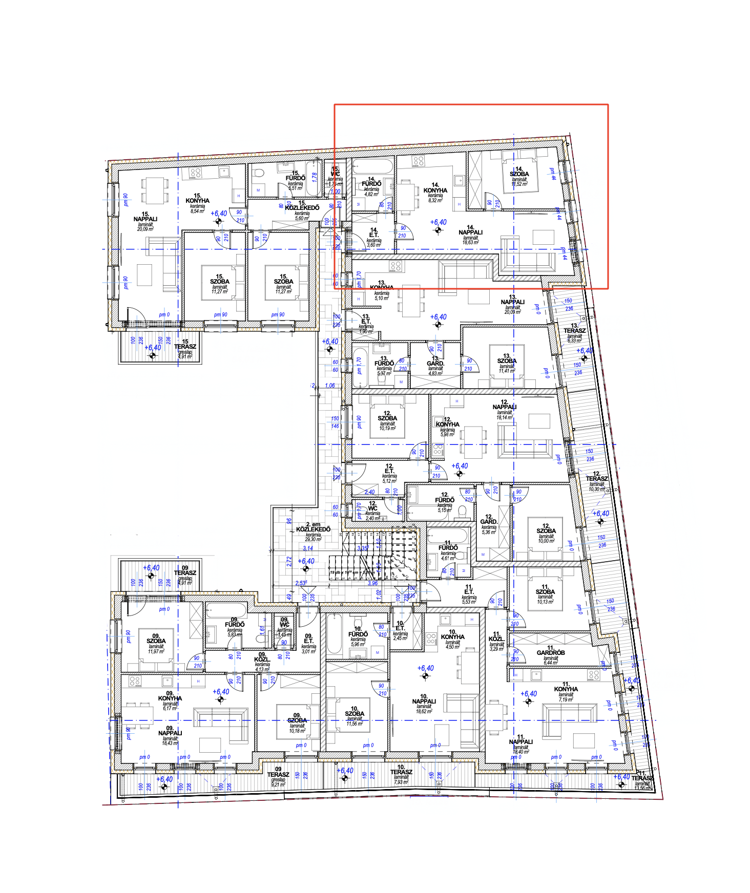 - 2. emeleti elhelyezkedés,