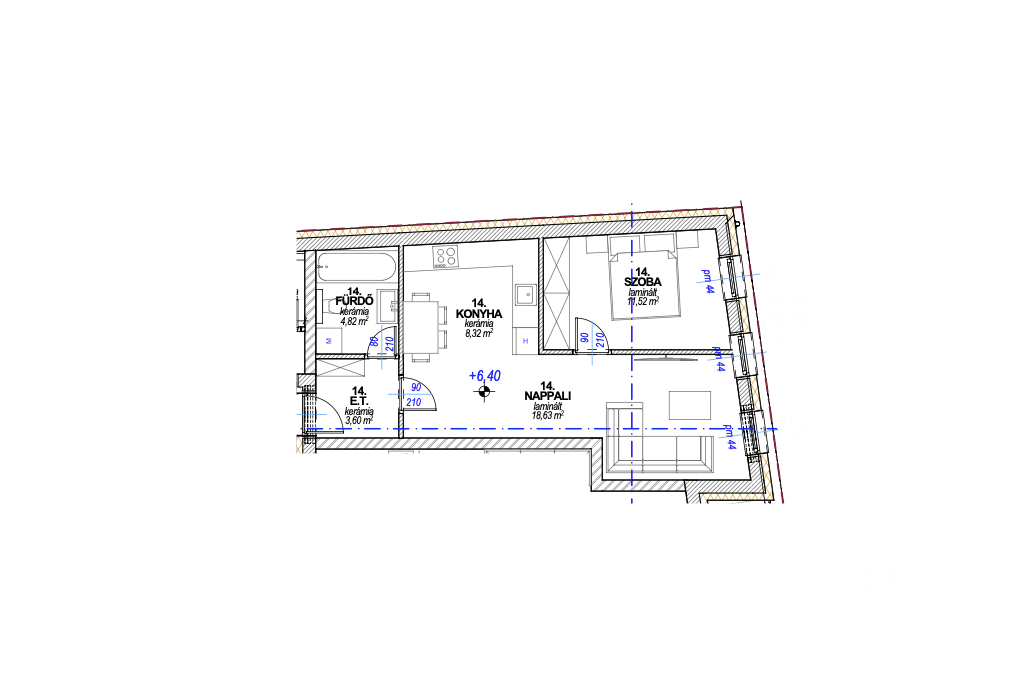- a fürdőszobában kád kerül kialakításra, de felár ellenében zuhanyzós fürdőszoba kialakítására is van lehetőség (+0,8 millió Ft),