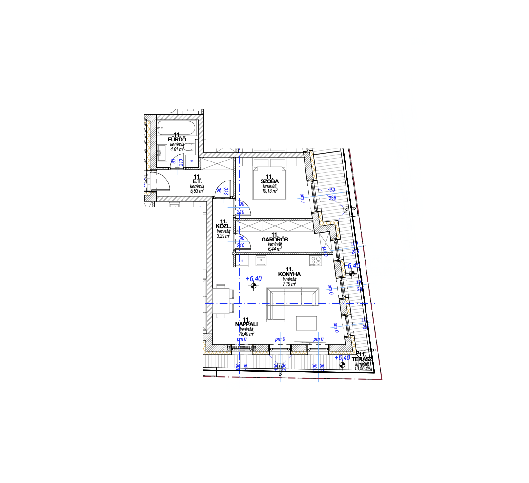 - a fürdőszobában kád kerül kialakításra, de felár ellenében zuhanyzós fürdőszoba kialakítására is van lehetőség (+0,8 millió Ft),